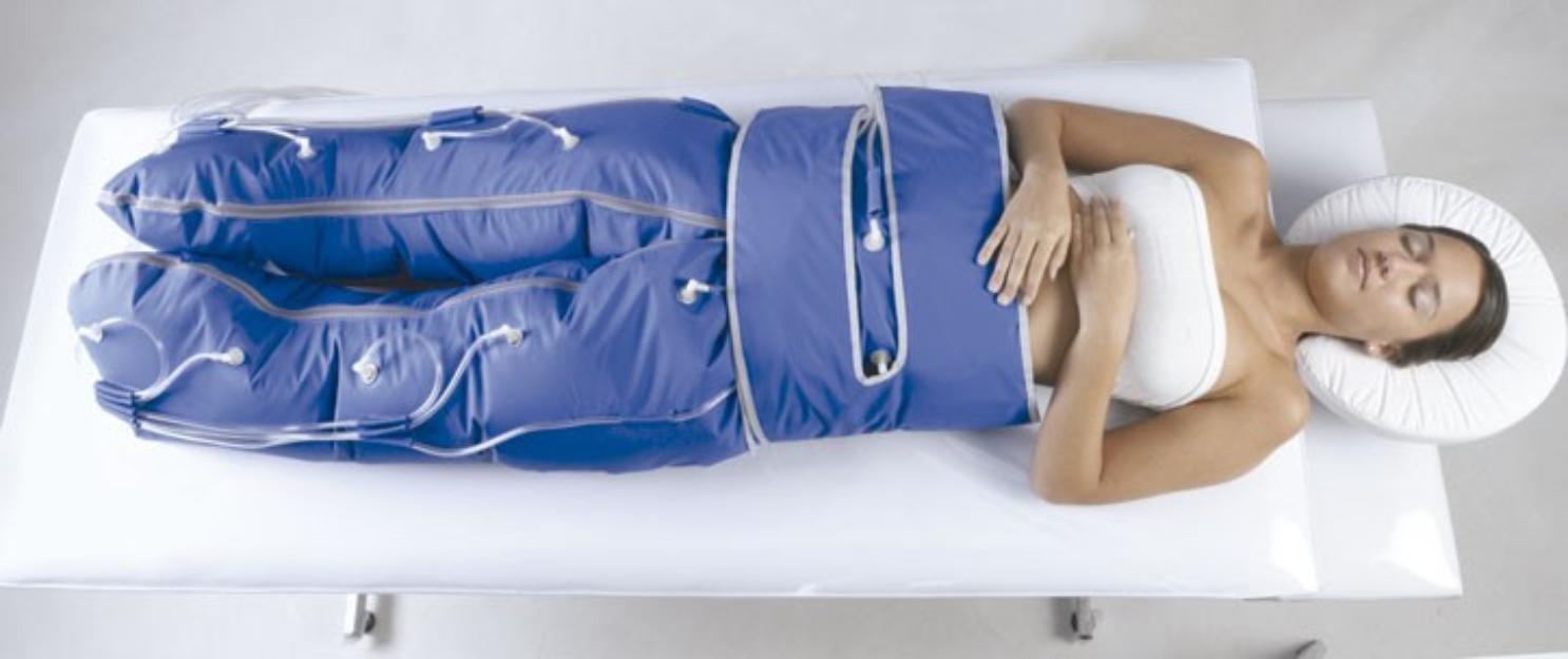 La presoterapia trabaja para mejorar la circulación sanguínea. Es ideal para problemas tales como la retención de líquidos, consiguiendo el perfecto drenaje linfático a través del cual las toxinas acumuladas y las grasas pueden ser eliminadas. La presoterapia utiliza un traje de cuerpo entero en el que se bombea aire comprimido causando que el traje se expanda en ondas, estimulando así la circulación y el drenaje linfático.